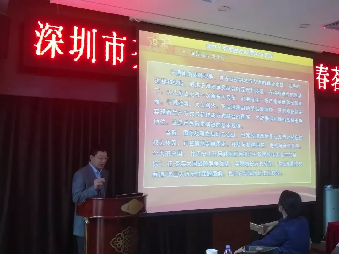 会议第二项议程,由张兆垠副司令员作《新时代军民融合的理论与实践》。如何理解国家军民融合战略?张兆垠副司令员分别从军民融合“是什么”、“为什么”、“融什么”、“怎么融”四个方面进行了具体详细的阐述。对于人们普遍关心的军民融合实践问题,张兆垠副司令员给出了振奋人心的解答——发挥民营企业在军民融合发展中的生力军作用。张兆垠副司令员认为,要充分发挥民营企业这支力量在军民融合发展中的生力军作用,当前需要解决好机制创新、需求引领、技术支撑、人才保证等问题,并介绍了具体的实践措施。最后,张兆垠副司令员作出表态,将竭诚为军队、地方政府和企业服务,把军民融合的工作做深做细做扎实做到位,并希望与会的各位企业家携手协力,共同为推进国家军民融合这项崇高事业加速发展做出应有贡献!