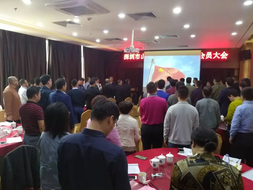 大会伊始,全体人员起立,奏唱国歌,在庄严神圣的氛围中,深圳市山东烟台商会第一次会员大会拉开了帷幕。