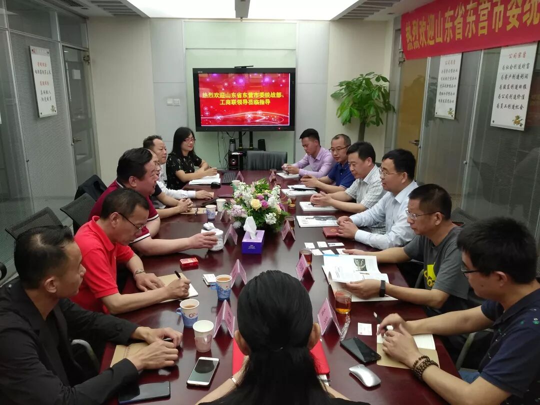 4月11日,东营市委统战部副部长、市工商联党组书记、常务副主席高申廉,万达集团董事局董事、轮值执行总裁巴树山,东营市工商联党组成员、副主席刘剑辉,东营市委统战部经济科长李连国,东营市工商联办公室副主任科员韩保彬一行领导莅临广东省山东商会深圳分会考察指导工作。山东省鲁商联盟会常务副会长、广东省山东商会常务副会长、广东省山东商会深圳分会会长、深圳市齐鲁文化研究会会长孙明高,深圳市烟台商会会长孔凡鹏、深圳市淄博商会会长赵磊、广东省山东商会深圳分会办公室副主任周爱先、深圳市山东淄博商会孙艳、陈军、张涛、孟兵等商会领导于商会会议室热情迎接了专程来访的东营市委统战部高申廉副部长一行,双方就东营市金融业创新发展等关键问题深入交流意见。