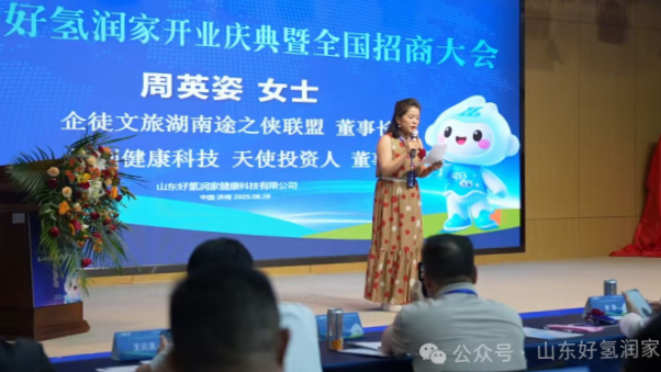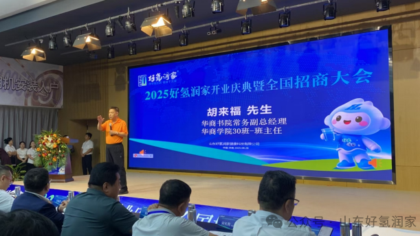 在全国招商大会上,好氢润家执行董事、CEO苏凌志发表了“氢水新纪元•擎创氢未来”全国招商合作演讲。他从发展趋势、市场政策、消费环境、就业压力、项目选择、市场前景、合作模式、扶持政策、盈利空间九大维度,全面解读了好氢润家“居家净享氢健康”免费生态商业策略的核心亮点。