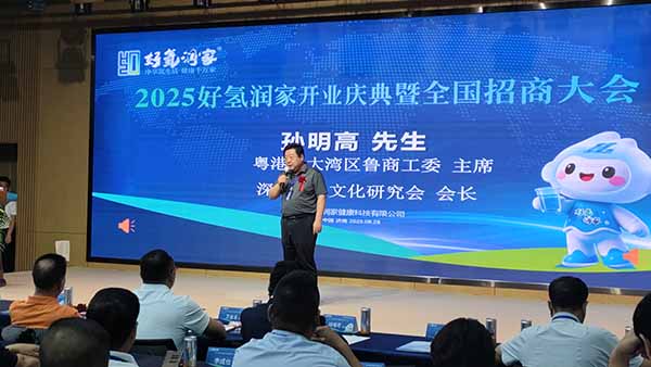 2025年8月28日,山东好氢润家健康科技有限公司(以下简称“好氢润家”)开业庆典暨全国招商大会在泉城济南好景科创园盛大启幕。此次活动以“氢水新纪元•擎创氢未来”为主题,汇聚了行业协会领导、专家学者、知名投资机构代表以及来自全国各地的近200家意向合作伙伴,共同见证好氢润家的全新启航,携手开启产业协同发展的崭新篇章。鲁商联盟会常务副会长兼大湾区鲁商工委主席、广东省山东商会常务副会长兼深圳会长、广东省异地商会联合会执行会长、深圳市齐鲁文化研究会会长孙明高,鲁商联盟会创投专委会副主席贺琦应邀出席。