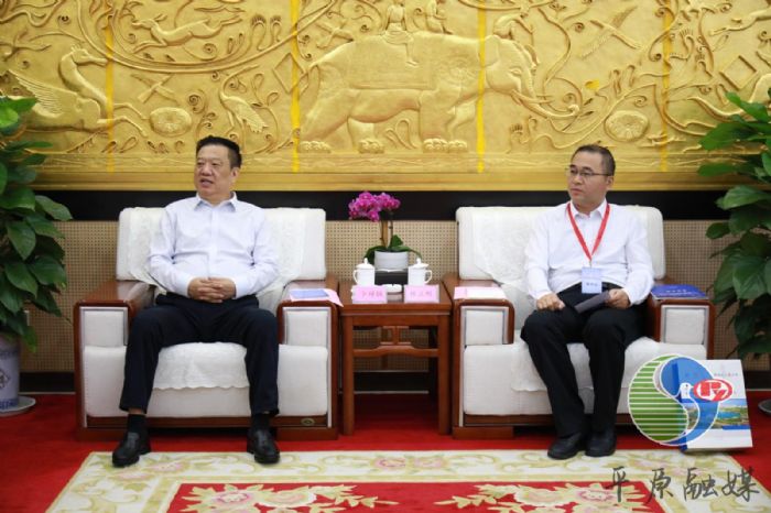 ▲会前,德州市政协主席卜祥联、平原县委书记王玉东共同会见了重要嘉宾