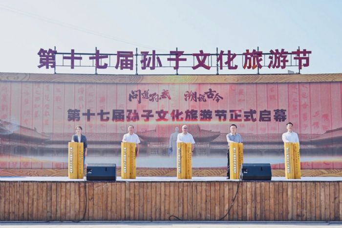 2025年9月10日,由东营市人民政府主办,东营市文化和旅游局、广饶县人民政府共同承办的第十七届孙子文化旅游节在东营市广饶县隆重开幕。东营市委副书记孙早军,山东省文化和旅游厅二级巡视员蔡世超,东营市政协副主席、九三学社东营市委会主委刘志坚,广饶县委书记陈伟颂,东营市文化和旅游局党组书记、局长李慧芬等相关部门同志出席活动,并共同为旅游节启幕。