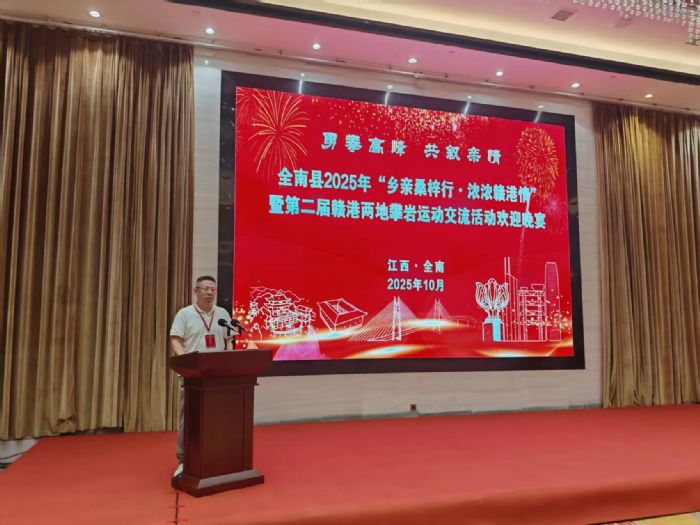 2025年10月31日至11月2日,江西省赣州市全南县以“攀岩”为媒介,成功举办了2025年“乡亲桑梓行·浓浓赣港情”暨第二届赣港两地攀岩运动交流活动。本次活动由江西省赣州市全南县委统战部、赣州海外联谊会、全南县侨联共同主办。全南县委书记边建忠,县领导彭智军、赖槐海、许瑞强、邓增婴等参与活动。赣州市委统战部副部长、市侨办主任伍春华,江西省政府驻粤办经济协作处处长朱薇等出席活动。