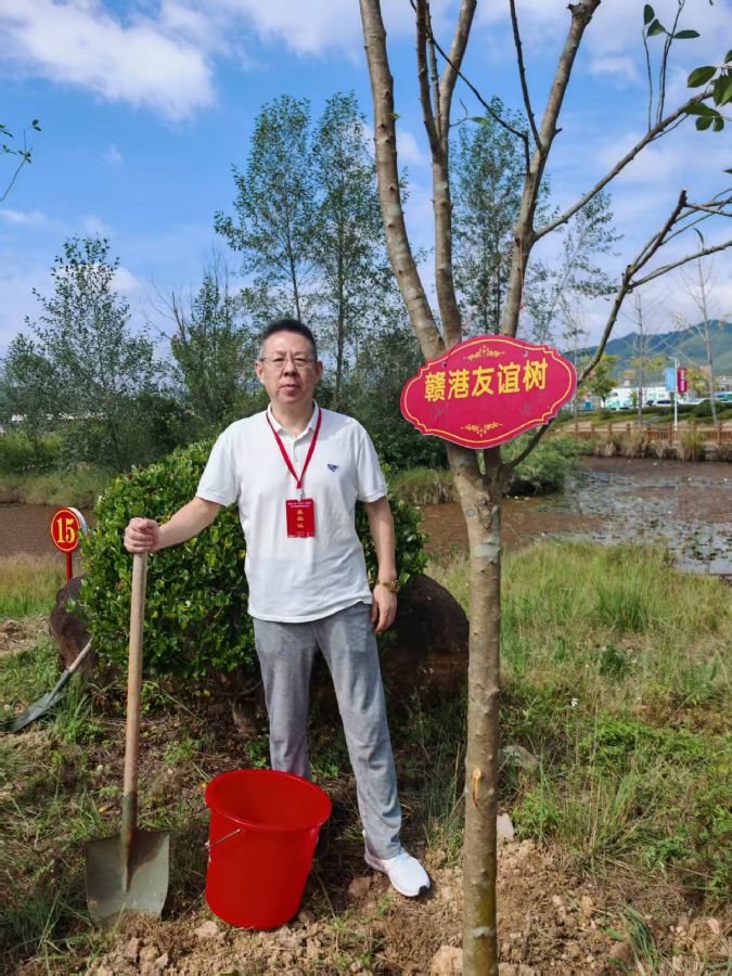 随后,大家前往赣港友谊林种植点,共同开展友谊树种植活动,不仅为攀岩小镇增添新绿,也寄托了对两地未来合作与交流的美好期许。