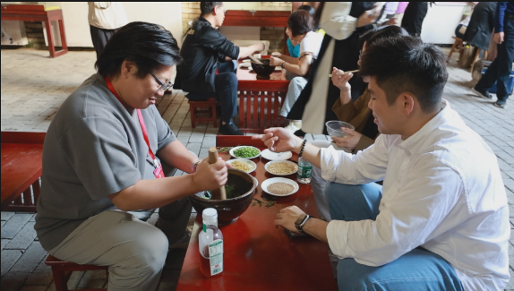 下午,嘉宾们来到雅溪古村,跟随讲解参与花棍舞趣味互动,参观客家风俗文化展示和客家围屋,体验打糍粑、制作擂茶等传统活动,深入了解雅溪古村的建筑特色与人文历史,领略非遗文化的独特魅力,感受客家文化的深厚内涵。