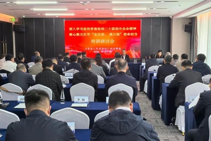 2025年11月26日,山东省人民政府驻广州办事处于深圳组织举办驻粤机构党的二十届四中全会精神解读培训研讨会。会议以“深入学习宣传贯彻全会精神,凝心聚力扛牢‘走在前、挑大梁’使命担当”为主题,旨在深化思想认识,搭建合作桥梁,凝聚发展合力。山东省政府驻广州办事处主任毕泗亮出席会议并讲话。山东省政府驻广州办事处副主任闵凡岭主持会议。广东省山东商会常务副会长、广东省山东商会(深圳)常务副会长赵延军,广东省山东商会(深圳)常务副会长、深圳市山东青岛商会执行会长兼秘书长许德学,广东省山东烟台商会副会长段帅等来自39家山东驻粤机构的70余名代表参加了会议。