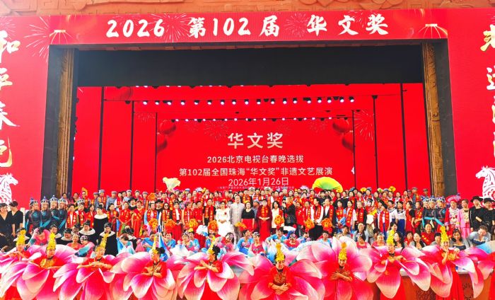 2026年1月26日,由世界和平音乐会大湾区组委会主办的“和平春晚·非遗汇演”暨2026年北京电视台春晚选拔、第102届全国“华文奖”文艺汇演在广东省珠海市香洲区圆明新园大剧院隆重举行。本次盛会汇聚全国100支优秀文艺团队及1200余位艺术家,自上午9时至傍晚6时全天精彩展演,以非物质文化遗产的深厚底蕴献礼马年新春,为大湾区观众呈现了一场沉浸式的中华传统文化视听盛宴。