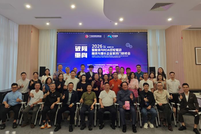 2026年4月11日,由广东省资源互换协会与中科新狮企业家资源联盟联合主办的“破局·重构”2026智能体与RDA双轮驱动融资与增长企业家闭门研修会在深圳前海梦工场愈欣空间会议厅圆满召开。来自广东省资源互换协会企业会员、香港精英人士、投融机构代表、湾区企业家及中科新狮企业家联盟会员等60余名代表出席了本次会议。广东省山东商会(深圳)副会长、粤港爱心义工联盟主席、香港信用担保联合会主席、深圳市聚爱会荣誉会长、国际潮商联谊会文化主席、广东惠州红棉慈善会荣誉主席、中国香港联合智库主席汪润田主礼本次会议。