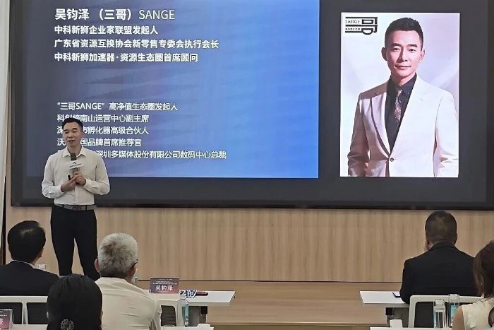 中科新狮企业家联盟发起人、“三哥SANGE高净值生态圈”发起人吴钧泽(三哥)代表主办方致辞。他介绍了中科新狮平台“链接全球资源,成就商业梦想”的行动指引,以及“文化+资源+资本+流量”的企业家生态圈建设成果。平台已成功举办37届沙龙,多个板块项目已进入孵化落地阶段,目标三年内举办500场沙龙活动。