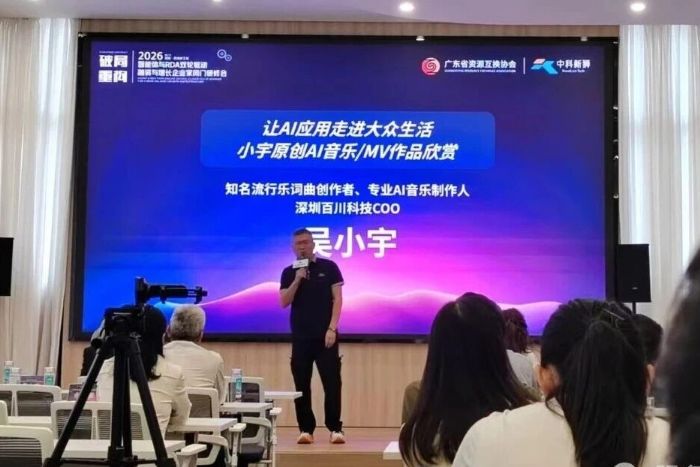 秦合百川科技COO、AI音乐制作人吴小宇分享了《“雕刻时光”,让AI应用走进大众生活——原创歌曲MV定制》主题。他展示了通过“音乐人+AI”人机协作方式,提供一对一专属原创歌曲定制及MV制作服务,让AI赋能情感表达,现场播放的《老伴》《锋芒》等作品引发嘉宾强烈共鸣。